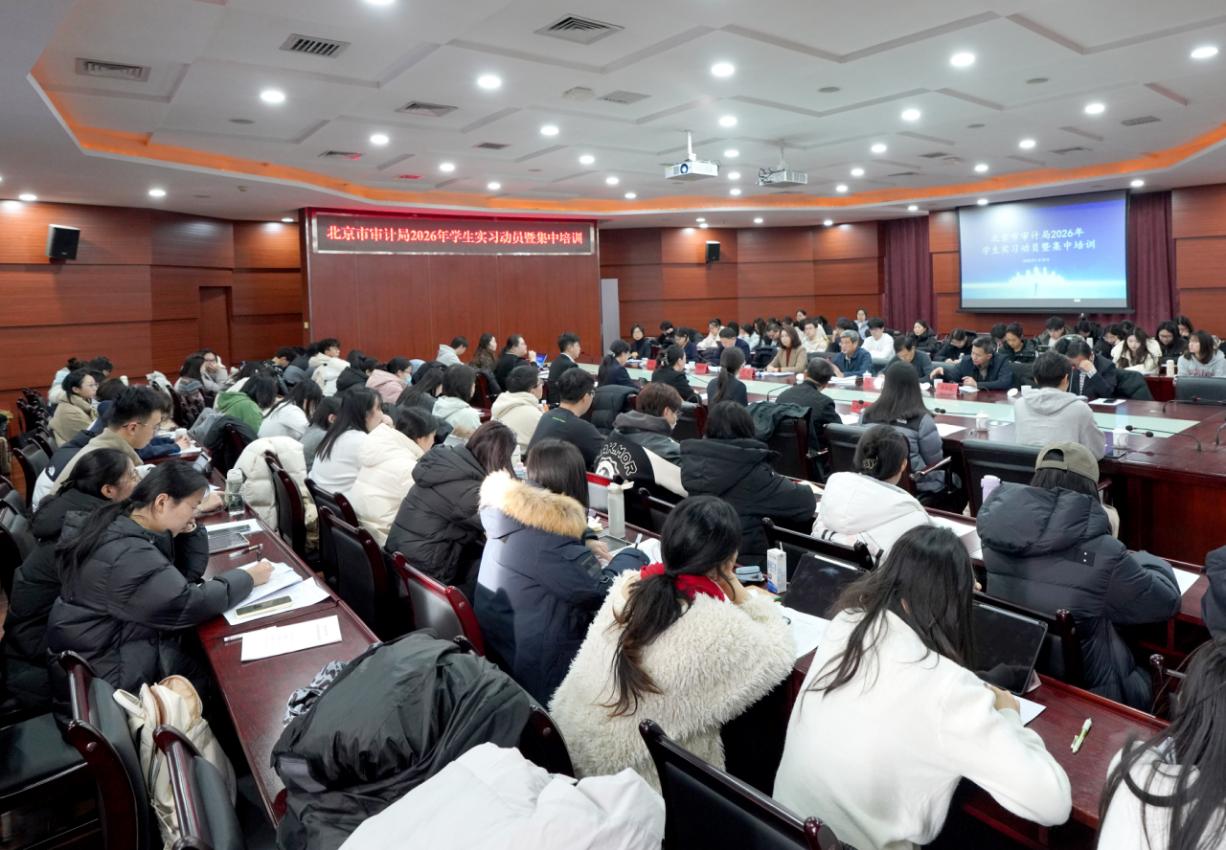 近日,北京市审计局举办2026年学生实习动员暨集中培训,首都经济贸易大学党委常委、副校长姚林修,市审计局党组成员、总审计师于晨出席会议,首都经济贸易大学会计学院党委副书记、院长于鹏主持。